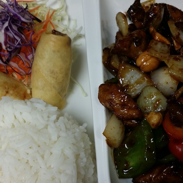 > PLEASE CHOOSE ONE <BBQ Chicken Quarter Leg 2 Veggie Rolls
