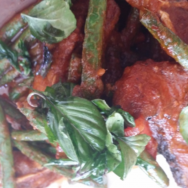 Saute green bean, chili, bell pepper, and spicy Thai chili paste.