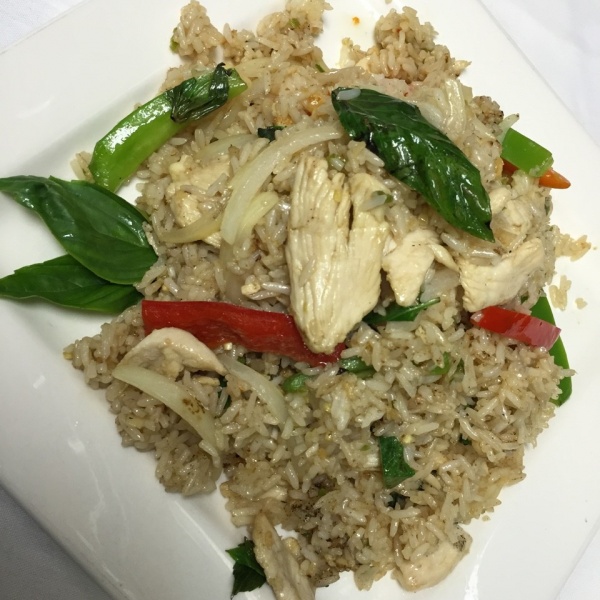 Fried rice with garlic, chilli, onion, bell pepper, basil, and choice of meat.