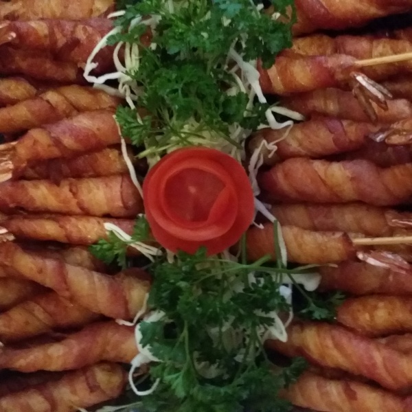 Fried Shrimp, wrapped in bacon served with hot sauce. [This item requires 15 minutes to prepare.]