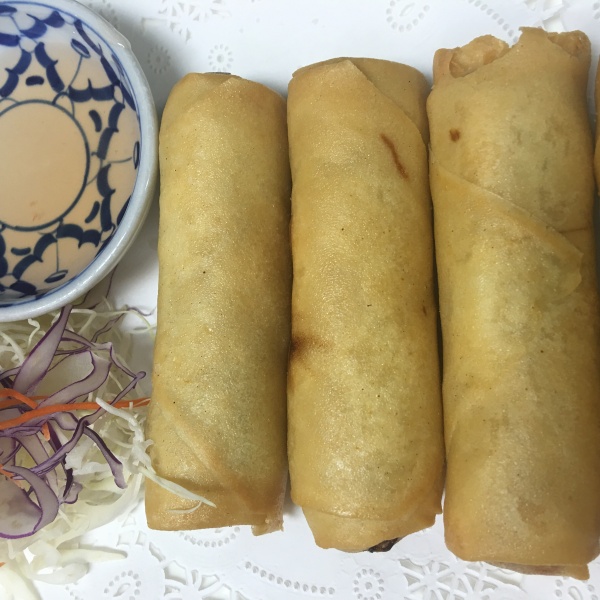 Mixed vegetable that are wrapped in rice paper, deep fried and served with sweet and sour sauce. [This item requires 15 minutes to prepare.]
